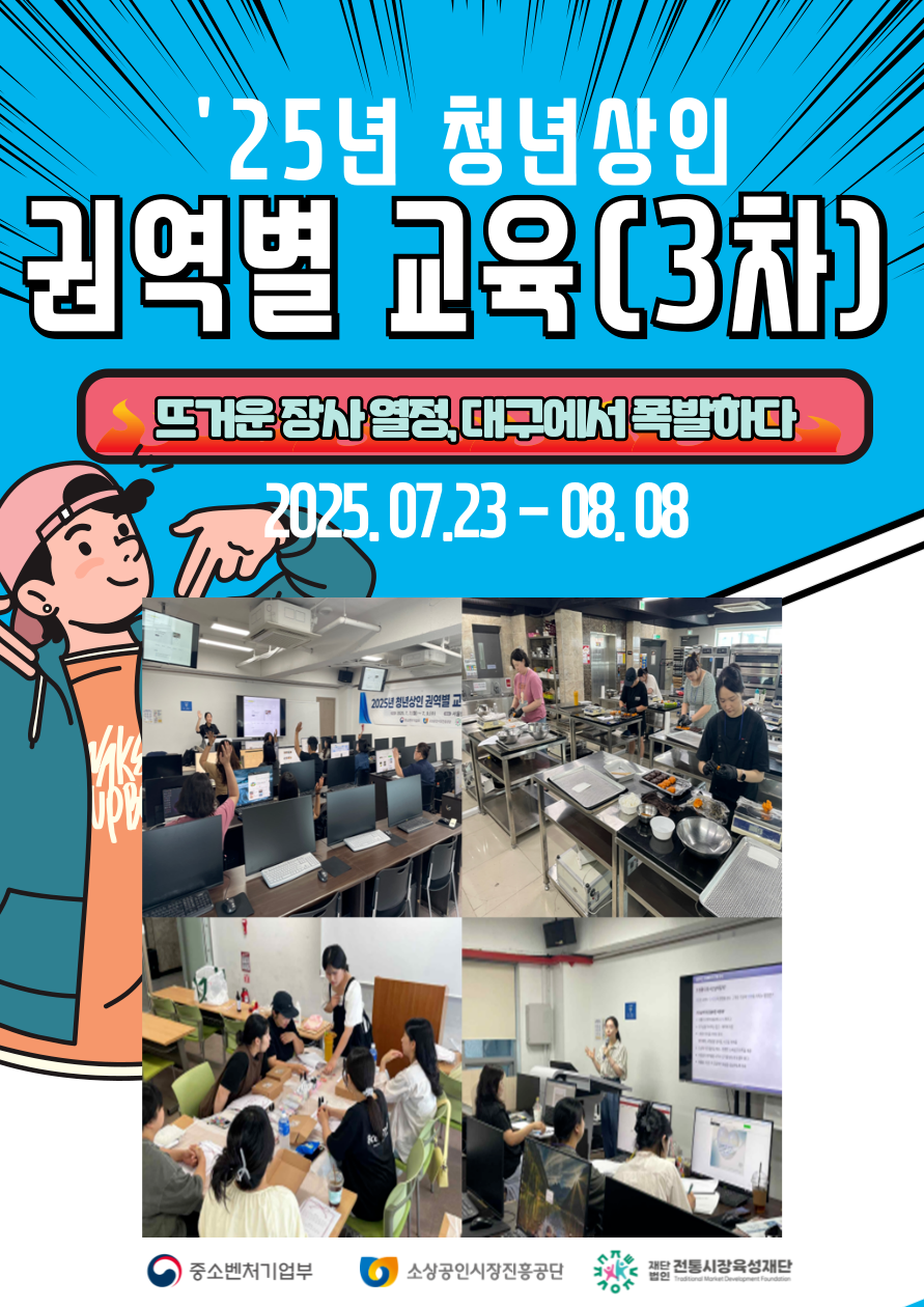 2025년 청년상인 권역별 교육 (3회차) 교육생 추가 모집을 실시합니다.