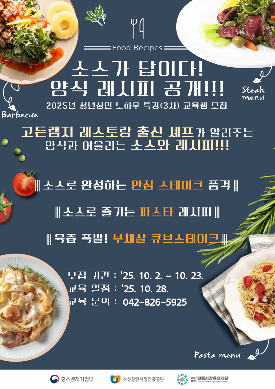 2025년 청년상인 노하우 특강 교육 (3회차) 교육생 모집을 실시합니다.