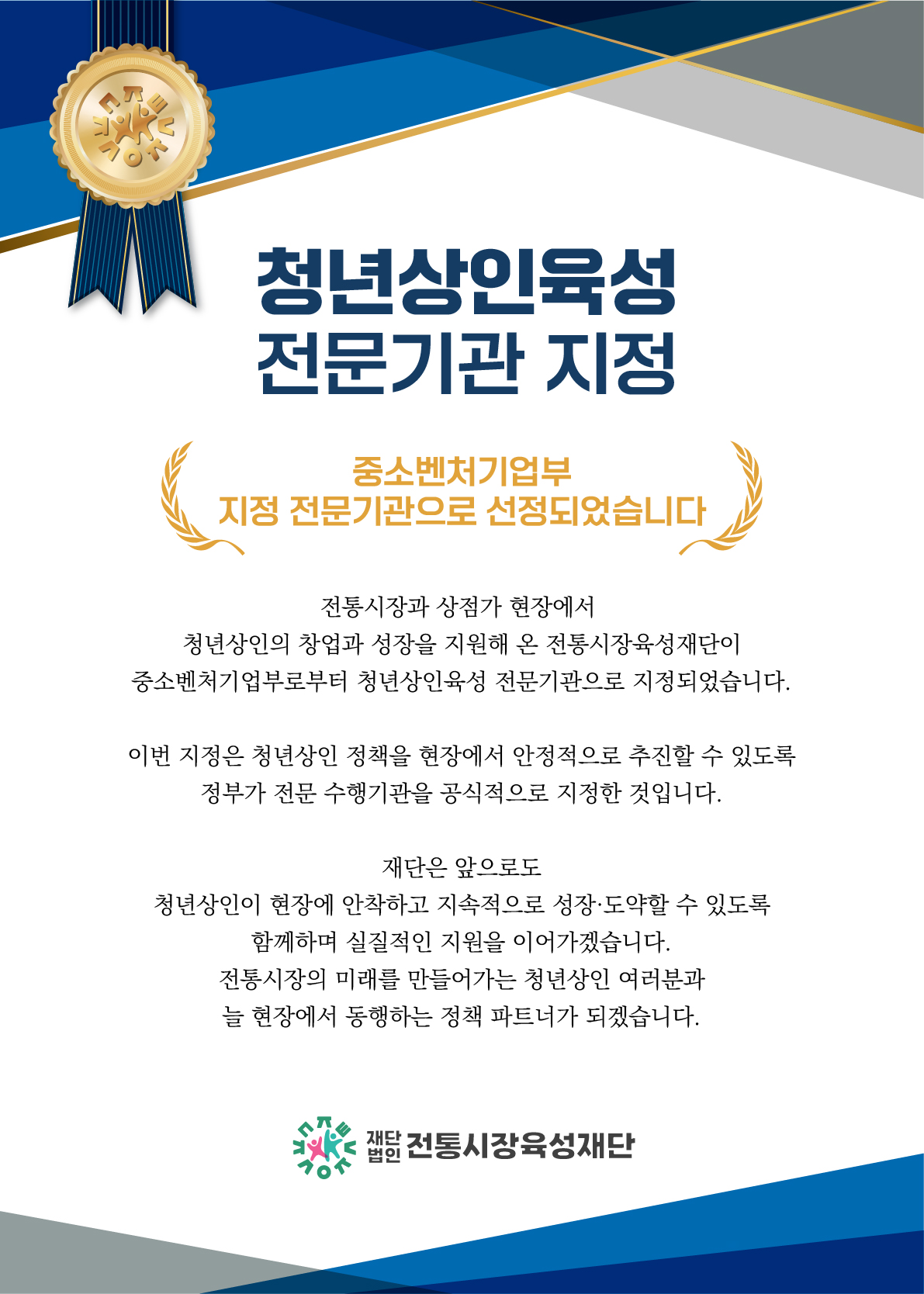 [중소벤처기업부] 청년상인육성 전문기관 지정