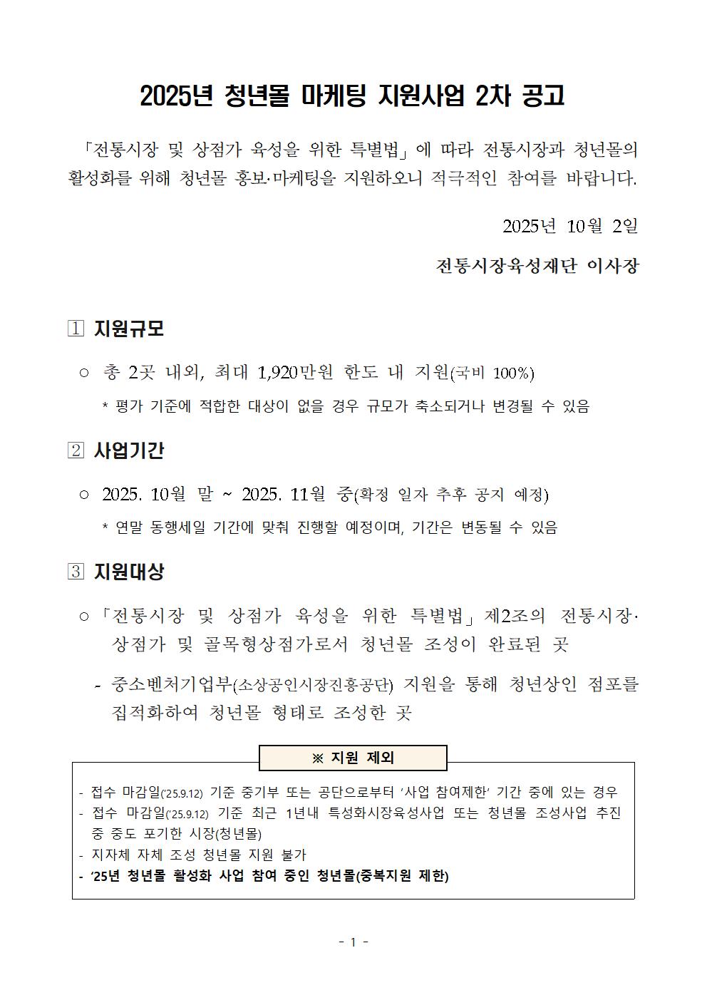 문의처 : 전통시장육성재단 청년지원팀(042-826-5934)