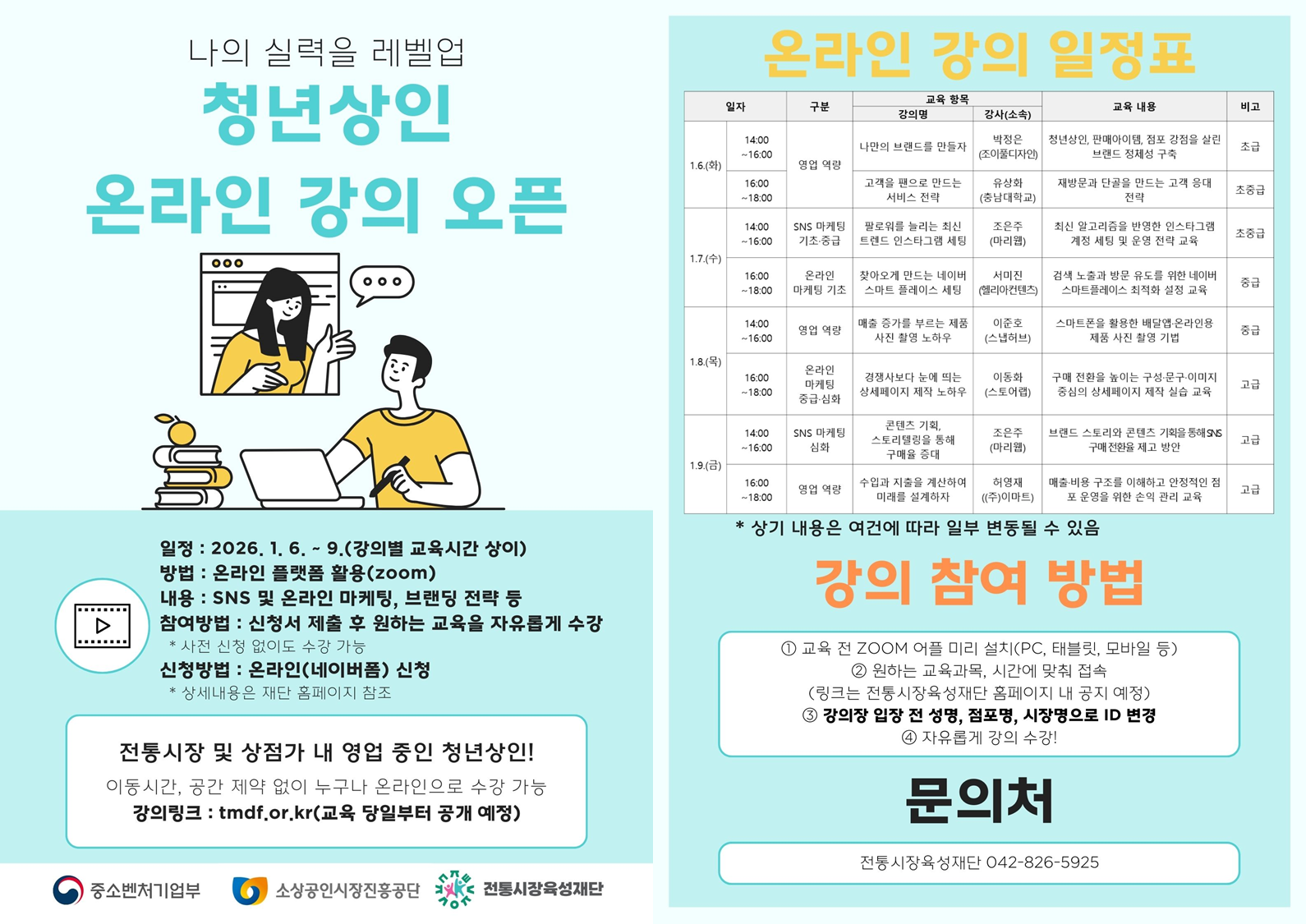 2025년 청년상인 권역별 교육 (온라인) 교육생 모집을 실시합니다.
